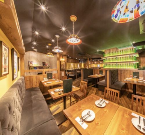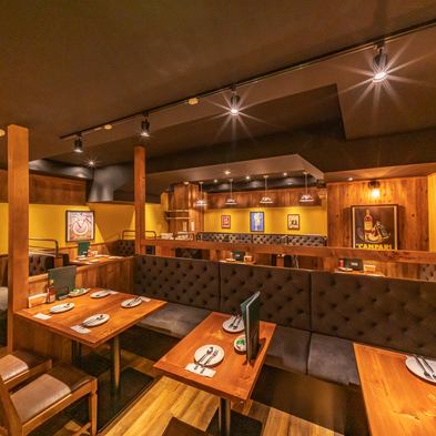 中規模宴会にもちょうどよいソファー席を用意しております。様々なお席をご用意しておりますので、用途に合わせてお使いいただけます!木目調の温かみのある内装がご友人やご家族様、ママ友などのお集まりにオススメ。テーブルを囲んでゆっくりとお料理、お酒をお楽しみいただけます♪